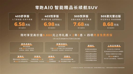 早上 7 点半的北三环高架又堵成了停车场,隔壁网约车司机啃着包子扫了一眼我开的试驾车,探出头喊:"兄弟这新出的零跑 A10 吧?我正打算把我那台老油车换了,听说不到 9 万就能带激光雷达?" 我笑着挥了挥手 —— 是啊,现在的新能源市场卷到什么程度?6 万起步,最高不到9万的小车,能把以前 20 万级才有的配置给你塞得满满当当,零跑 A10 这台刚上市的小型纯电 SUV,显然就是来掀桌子的。