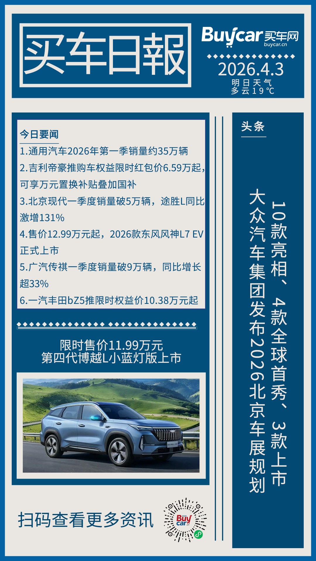 买车日报-20260403-大众汽车集团2026北京车展规划:10款亮相、4款全球首秀、3款上市