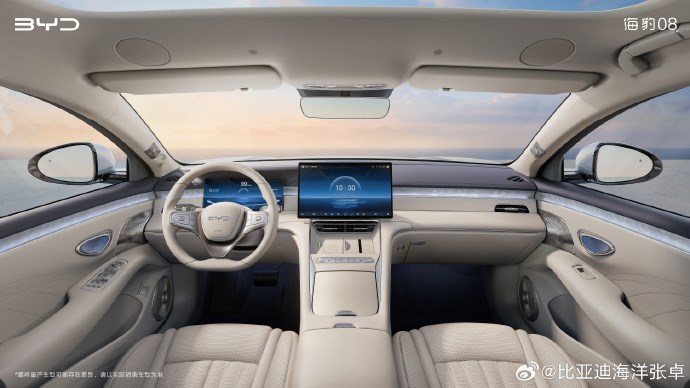 4月15日,买车网Buycar获悉,比亚迪汽车海洋网销售事业部总经理张卓,在社交媒体发布了比亚迪海豹08内饰官图,新车搭载海洋美学2.0全新旗舰座舱,以 “松弛之境 + 治愈之美” 为设计理念。
